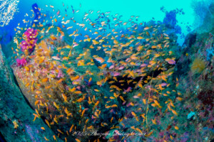 3番の方へ流していくとキンギョハナダイやアカオビハナダイが集合してました!