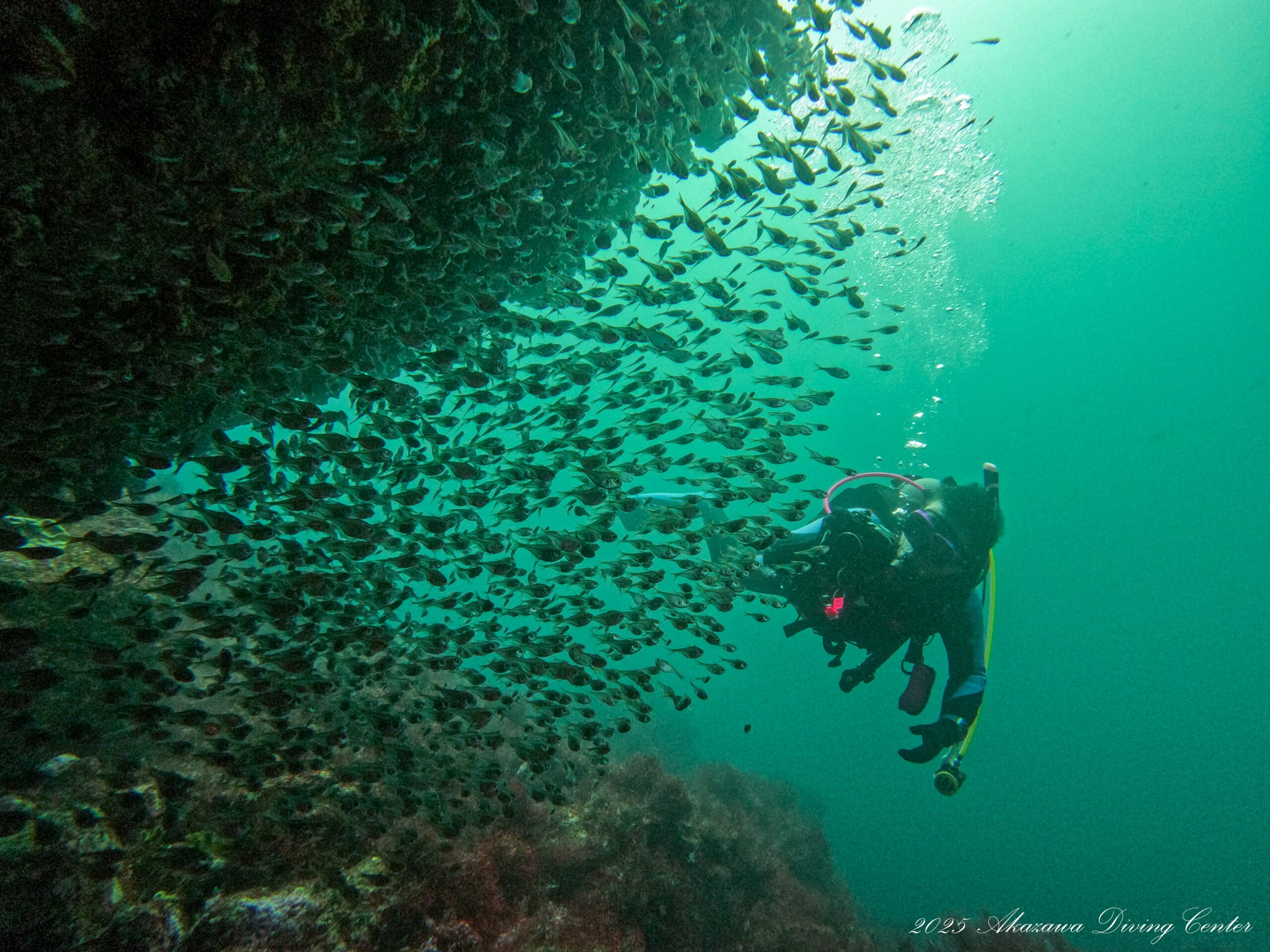 ヌノサラシ、ムレハタタテダイ×50、、シマアジ群れ、アオリイカ、カミナリベラ、ベラギンポ、オオウミウマ、ウミウシカクレエビ、etc…