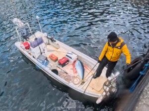 最近キハダマグロが沖を回ってるよ~ って漁師から聞いてましたが、まさか見れるとは!