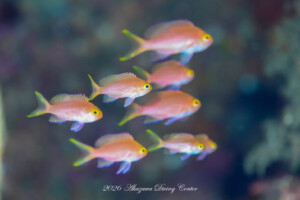 キンギョハナダイ(オス・メス・yg)、サクラダイ(オス・メス・yg)、スジハナダイ(メス・yg)、ナガハナダイ(オス・メス・yg)、アカオビハナダイ(オス・メス・yg)、コウリンハナダイ(オス・メス・yg)、ミナミハナダイ(オス・メス・yg)、アカボシハナゴイ(オス・メス・yg)、アサヒハナゴイ(メス・yg)、ベニハナダイyg、ルリハタyg、ツキベラyg、ヤマシロベラ、ヤマブキベラ、トカラベラ、カノコベラ、キツネベラ、キツネダイ、オグロベラ、オキナワベニハゼ、ベンケイハゼ、フトスジイレズミハゼ、アカイソハゼ、コバンハゼ、クダゴンベいっぱい、キリンゴンベ、サラサゴンベ、オナガスズメダイ、クマノミ、レンテンヤッコ、トサヤッコ(オス・メス)、ヤイトヤッコ、アオハナテンジクダイ、イサキ群れ、フエダイ群れ、アカスジカクレエビ、イソバナカクレエビ、ハクセンアカホシカクレエビ、テヅルモヅルエビ、トウシマコケギンポ、ニラミギンポ、テングダイいっぱい、カメ、ハチジョウタツetc…