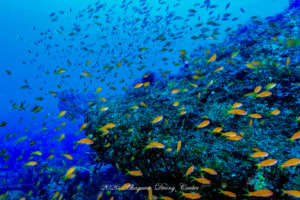 それに負けじと青い海に映えるキンギョハナダイの群れ!!