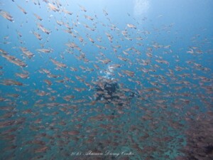 キンギョハナダイ(オス・メス・yg)、サクラダイ(オス・メス・yg)、スジハナダイ(メス・yg)、ナガハナダイ(オス・メス・yg)、アカオビハナダイ(オス・メス・yg)、コウリンハナダイ(オス・メス・yg)、ミナミハナダイ(オス・メス・yg)、アカボシハナゴイ(オス・メス・yg)、アサヒハナゴイ(メス・yg)、ベニハナダイyg、キシマハナダイyg、イトヒキコハクハナダイyg、ルリハタyg、ツキベラyg、ヤマシロベラ、ヤマブキベラ、トカラベラ、カノコベラ、キツネベラ、キツネダイ、オグロベラ、オキナワベニハゼ、ベンケイハゼ、フトスジイレズミハゼ、アカイソハゼ、コバンハゼ、クダゴンベいっぱい、キリンゴンベ、サラサゴンベ、アマミスズメダイyg、オナガスズメダイ、クマノミ、シロボシスズメダイ、ゲッコウスズメダイ、レンテンヤッコ、トサヤッコ(オス・メス)、ヤイトヤッコ、アオハナテンジクダイ、イサキ群れ、フエダイ群れ、ハクセンエビ、アカスジカクレエビ、イソバナカクレエビ、ハクセンアカホシカクレエビ、テヅルモヅルエビ、トウシマコケギンポ、ニラミギンポ、テングダイいっぱい、カメ、etc…