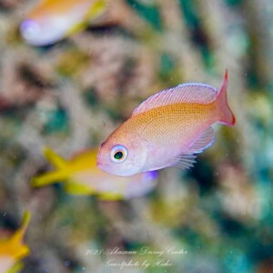 キンギョハナダイ(オス・メス・yg)、サクラダイ(オス・メス・yg)、スジハナダイ(メス・yg)、ナガハナダイ(オス・メス・yg)、アカオビハナダイ(オス・メス・yg)、コウリンハナダイ(オス・メス・yg)、ミナミハナダイ(オス・メス・yg)、アカボシハナゴイ(オス・メス・yg)、アサヒハナゴイ(メス・yg)、ベニハナダイyg、キシマハナダイyg、イトヒキコハクハナダイyg、ルリハタyg、ツキベラyg、ヤマシロベラ、ヤマブキベラ、トカラベラ、カノコベラ、キツネベラ、キツネダイ、オグロベラ、オキナワベニハゼ、ベンケイハゼ、フトスジイレズミハゼ、アカイソハゼ、コバンハゼ、クダゴンベいっぱい、キリンゴンベ、サラサゴンベ、アマミスズメダイyg、オナガスズメダイ、クマノミ、シロボシスズメダイ、ゲッコウスズメダイ、レンテンヤッコ、トサヤッコ(オス・メス)、ヤイトヤッコ、アオハナテンジクダイ、イサキ群れ、フエダイ群れ、ハクセンエビ、アカスジカクレエビ、イソバナカクレエビ、ハクセンアカホシカクレエビ、テヅルモヅルエビ、トウシマコケギンポ、ニラミギンポ、テングダイいっぱい、カメ、etc…