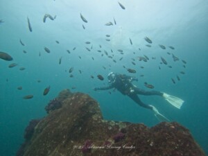 カンパチが群れを追い掛け回していて、迫力満点でした!