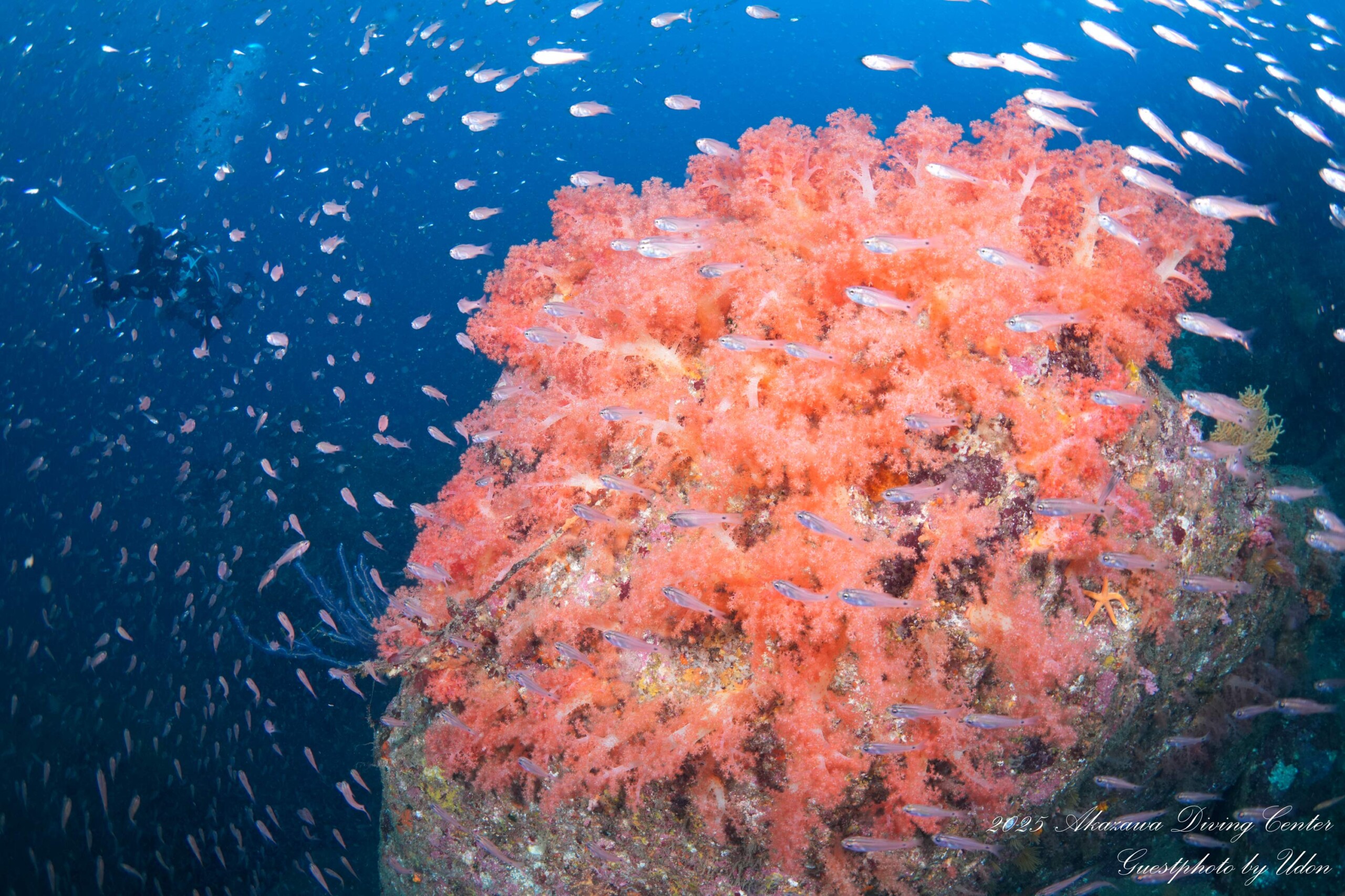 キンギョハナダイ(オス・メス・yg)、サクラダイ(オス・メス・yg)、スジハナダイ(メス・yg)、ナガハナダイ(オス・メス・yg)、アカオビハナダイ(オス・メス・yg)、コウリンハナダイ(オス・メス・yg)、ミナミハナダイ(オス・メス・yg)、アカボシハナゴイ(オス・メス・yg)、アサヒハナゴイ(メス・yg)、ベニハナダイyg、キシマハナダイyg、イトヒキコハクハナダイyg、ルリハタyg、ツキベラyg、ヤマシロベラ、ヤマブキベラ、トカラベラ、カノコベラ、キツネベラ、キツネダイ、オグロベラ、オキナワベニハゼ、ベンケイハゼ、フトスジイレズミハゼ、アカイソハゼ、コバンハゼ、クダゴンベいっぱい、キリンゴンベ、サラサゴンベ、オナガスズメダイ、クマノミ、シロボシスズメダイ、レンテンヤッコ、トサヤッコ(オス・メス)、ヤイトヤッコ、アオハナテンジクダイ、イサキ群れ、フエダイ群れ、アカスジカクレエビ、イソバナカクレエビ、ハクセンアカホシカクレエビ、テヅルモヅルエビ、トウシマコケギンポ、ニラミギンポ、テングダイいっぱい、カメ、etc…