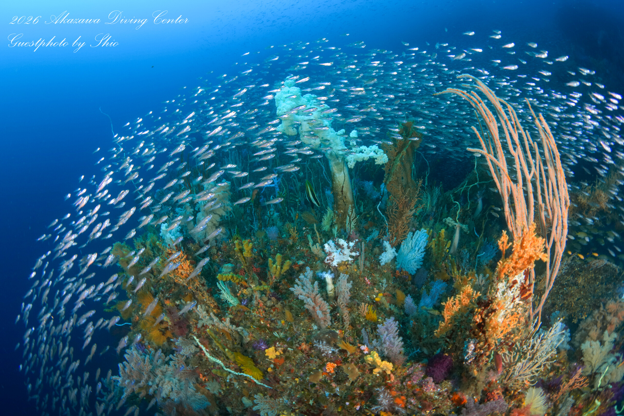 キンギョハナダイ(オス・メス・yg)、サクラダイ(オス・メス・yg)、スジハナダイ(メス・yg)、ナガハナダイ(オス・メス・yg)、アカオビハナダイ(オス・メス・yg)、コウリンハナダイ(オス・メス・yg)、ミナミハナダイ(オス・メス・yg)、アカボシハナゴイ(オス・メス・yg)、アサヒハナゴイ(メス・yg)、ベニハナダイyg、ルリハタyg、ツキベラyg、ヤマシロベラ、ヤマブキベラ、キツネベラ、キツネダイ、オグロベラ、オキナワベニハゼ、ベンケイハゼ、フトスジイレズミハゼ、アカイソハゼ、コバンハゼ、クダゴンベいっぱい、キリンゴンベ、サラサゴンベ、オナガスズメダイ、クマノミ、レンテンヤッコ、トサヤッコ(オス・メス)、ヤイトヤッコ、アオハナテンジクダイ、イサキ群れ、フエダイ群れ、アカスジカクレエビ、イソバナカクレエビ、ハクセンアカホシカクレエビ、テヅルモヅルエビ、トウシマコケギンポ、ニラミギンポ、テングダイいっぱい、カメ、ハチジョウタツetc…