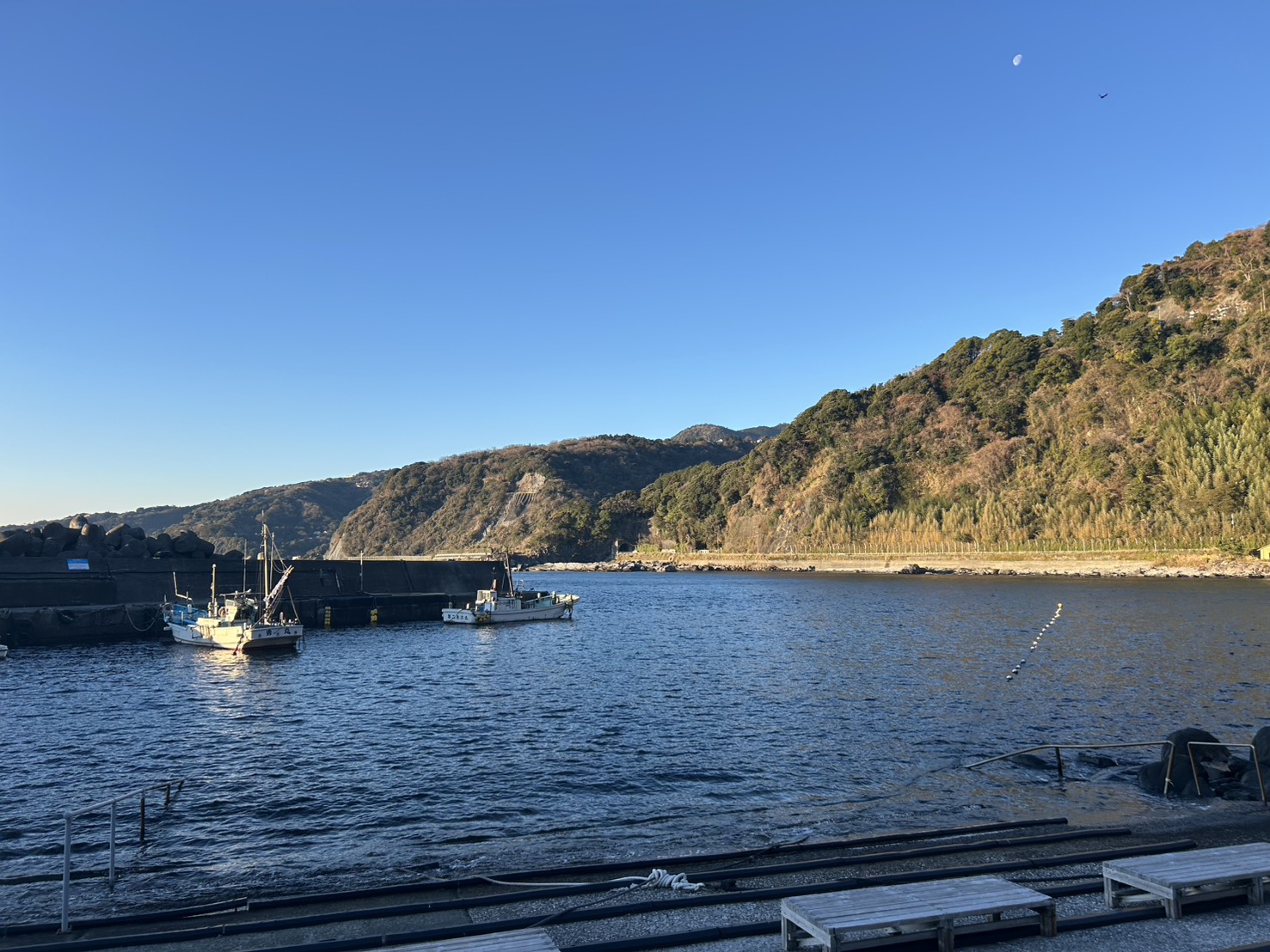 沖合はビュンビュン吹いてますが、赤沢エリアはまだ吹いておらず、とっても静か!