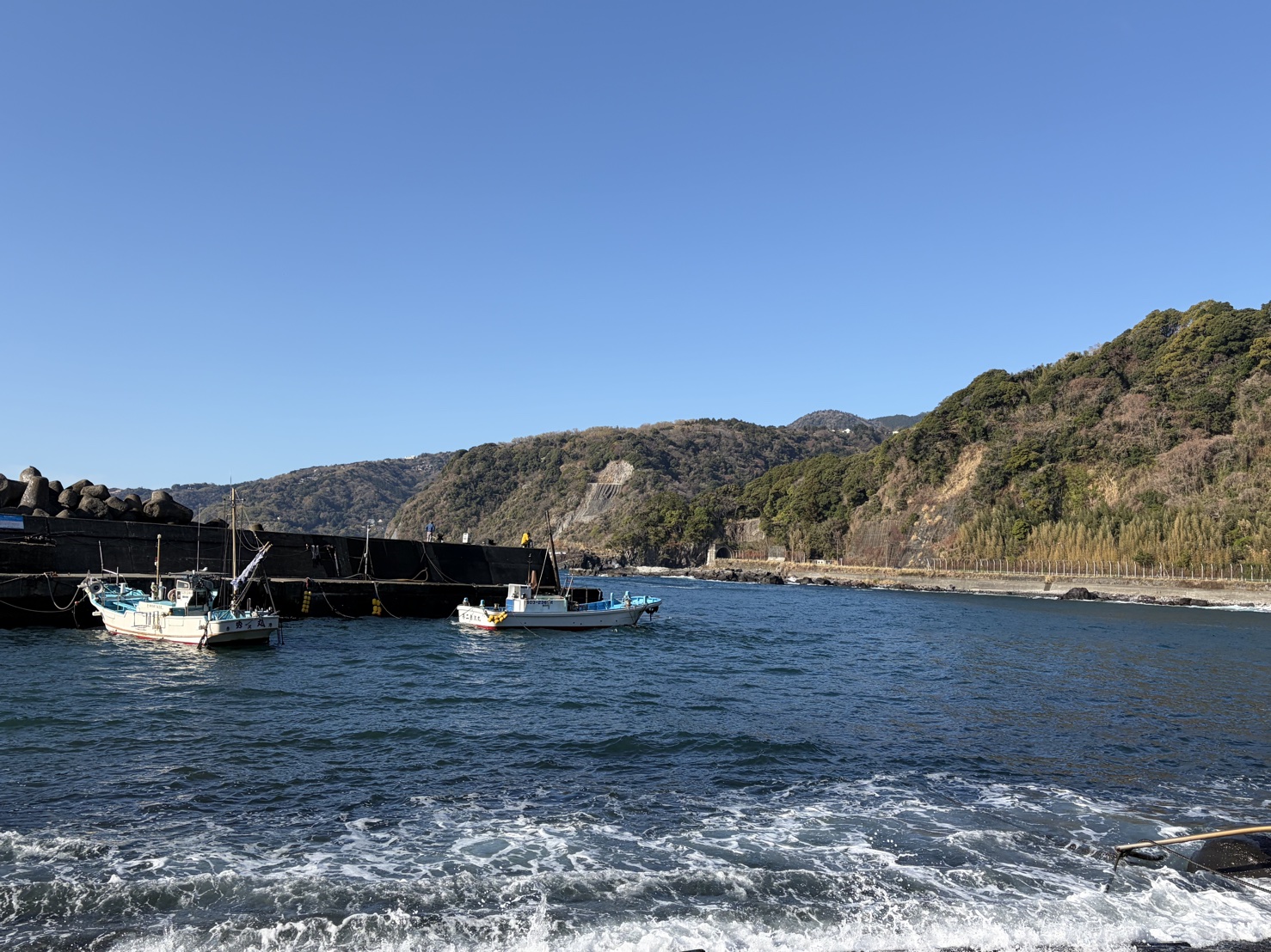 昨日のウネリが残り、ボートは出船不可。