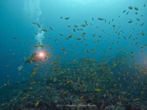 ヌノサラシ、ムレハタタテダイ×50、、シマアジ群れ、アオリイカ、カミナリベラ、ベラギンポ、オオウミウマ、ウミウシカクレエビ、etc…
