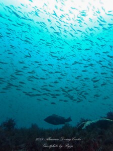 チビッ子クマノミ、シロブチハタ、ヨコシマクロダイ、コロダイyg、ムレハタタテダイ×80、チダイ群れ、シマアジ群れ、アオリイカ、カミナリベラ、ベラギンポ、オオウミウマ、etc…
