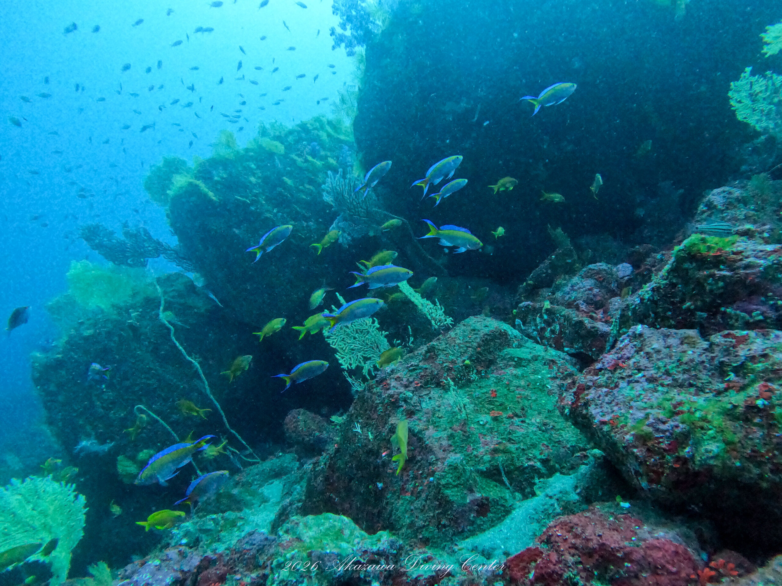 キンギョハナダイ(オス・メス・yg)、サクラダイ(オス・メス・yg)、スジハナダイ(メス・yg)、ナガハナダイ(オス・メス・yg)、アカオビハナダイ(オス・メス・yg)、コウリンハナダイ(オス・メス・yg)、ミナミハナダイ(オス・メス・yg)、アカボシハナゴイ(オス・メス・yg)、アサヒハナゴイ(メス・yg)、ベニハナダイyg、ルリハタyg、ツキベラyg、ヤマシロベラ、ヤマブキベラ、キツネベラ、キツネダイ、オグロベラ、オキナワベニハゼ、ベンケイハゼ、フトスジイレズミハゼ、アカイソハゼ、コバンハゼ、クダゴンベいっぱい、キリンゴンベ、サラサゴンベ、オナガスズメダイ、クマノミ、レンテンヤッコ、トサヤッコ(オス・メス)、ヤイトヤッコ、アオハナテンジクダイ、イサキ群れ、フエダイ群れ、アカスジカクレエビ、イソバナカクレエビ、ハクセンアカホシカクレエビ、テヅルモヅルエビ、トウシマコケギンポ、ニラミギンポ、テングダイいっぱい、カメ、ハチジョウタツetc…